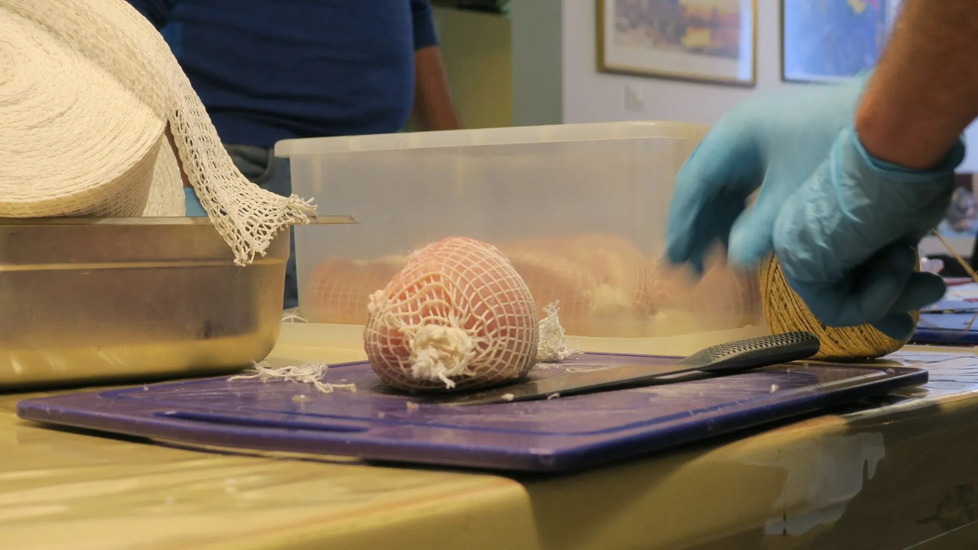 - רשת צפופה עשויה חוטים סינטטיים וגומי למזון, רחבה, מתאימה לנתחי בשר גדולים