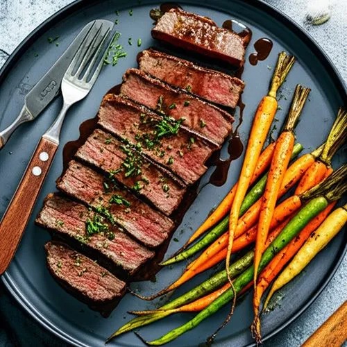 נתח אנטריקוט עם ירקות ויין אדום